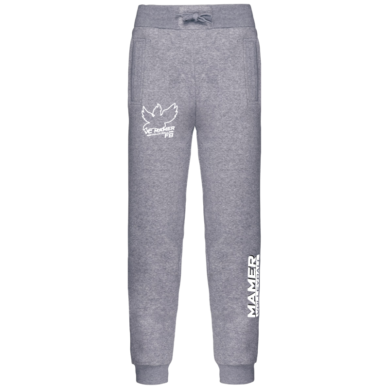 80% cotton / 20% polyester. Combed cotton. Brushed fleece. 2 side pockets and 1 back patch pocket. Wide ribbed cuffs and drawstring waistband. Ribbed hem.